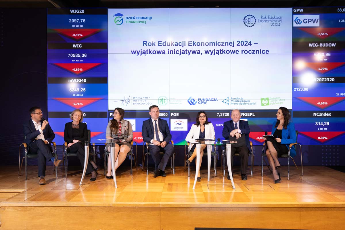 Na zakończenie pierwszej części DEF odbył się także panel „Rok Edukacji Ekonomicznej 2024 – wyjątkowa inicjatywa, wyjątkowe rocznice”. W panelu uczestniczyli reprezentanci 5 największych organizacji społecznych realizujących działalność edukacyjną w ramach szeroko rozumianej edukacji pozaformalnej w zakresie wiedzy ekonomicznej, które w marcu 2023 r. zawarły porozumienie w sprawie ustanowienia roku 2024 Rokiem Edukacji Ekonomicznej – Fundacja Warszawski Instytut Bankowości, Polskie Towarzystwo Ekonomiczne, Fundacja GPW, Fundacja Młodzieżowej Przedsiębiorczości oraz Związek Harcerstwa Polskiego, a także Krzysztof Pietraszkiewicz, Przewodniczący Komitetu Honorowego REE2024. Opowiedzieli oni słuchaczom o idei Roku Edukacji Ekonomicznej i zaplanowanych w ramach inicjatywy wydarzeniach oraz o tym, jak inne instytucje, organizacje i wszyscy zainteresowani mogą włączyć się w obchody tego wyjątkowego roku, przyjętego uchwałą Senatu Rzeczypospolitej Polskiej.