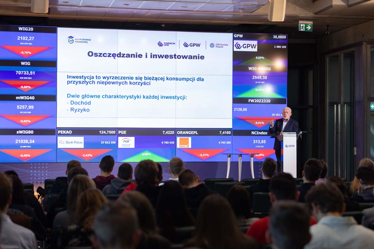 Fundacja GPW już po raz trzeci zorganizowała Dzień Edukacji Finansowej (DEF) - wydarzenie kierowane do szerokiej grupy odbiorców zainteresowanych poszerzeniem swojej wiedzy z zakresu finansów osobistych, oszczędzania i inwestowania. Udział w DEF (stacjonarnie oraz online) wzięło niemal 1800 osób. Dodatkowo ponad 4000 uczniów i nauczycieli ze 180 klas szkół ponadpodstawowych z całej Polski uczestniczyło w lekcji „EduAkcja: oszczędzanie i inwestowanie”, przeprowadzonej przez prof. dr hab. Krzysztofa Jajugę, która odbyła się w ramach wydarzenia.