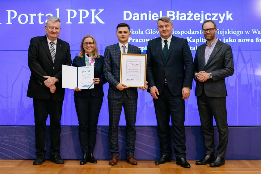 Wyróżnienie, którego patronem jest PFR Portal PPK otrzymał Daniel Błażejczyk za pracę ”Pracownicze plany kapitałowe jako nowa forma zabezpieczenia emerytalnego”, której promotorką była dr inż. Anna Milewska. Praca została obroniona w Szkole Głównej Gospodarstwa Wiejskiego w Warszawie.