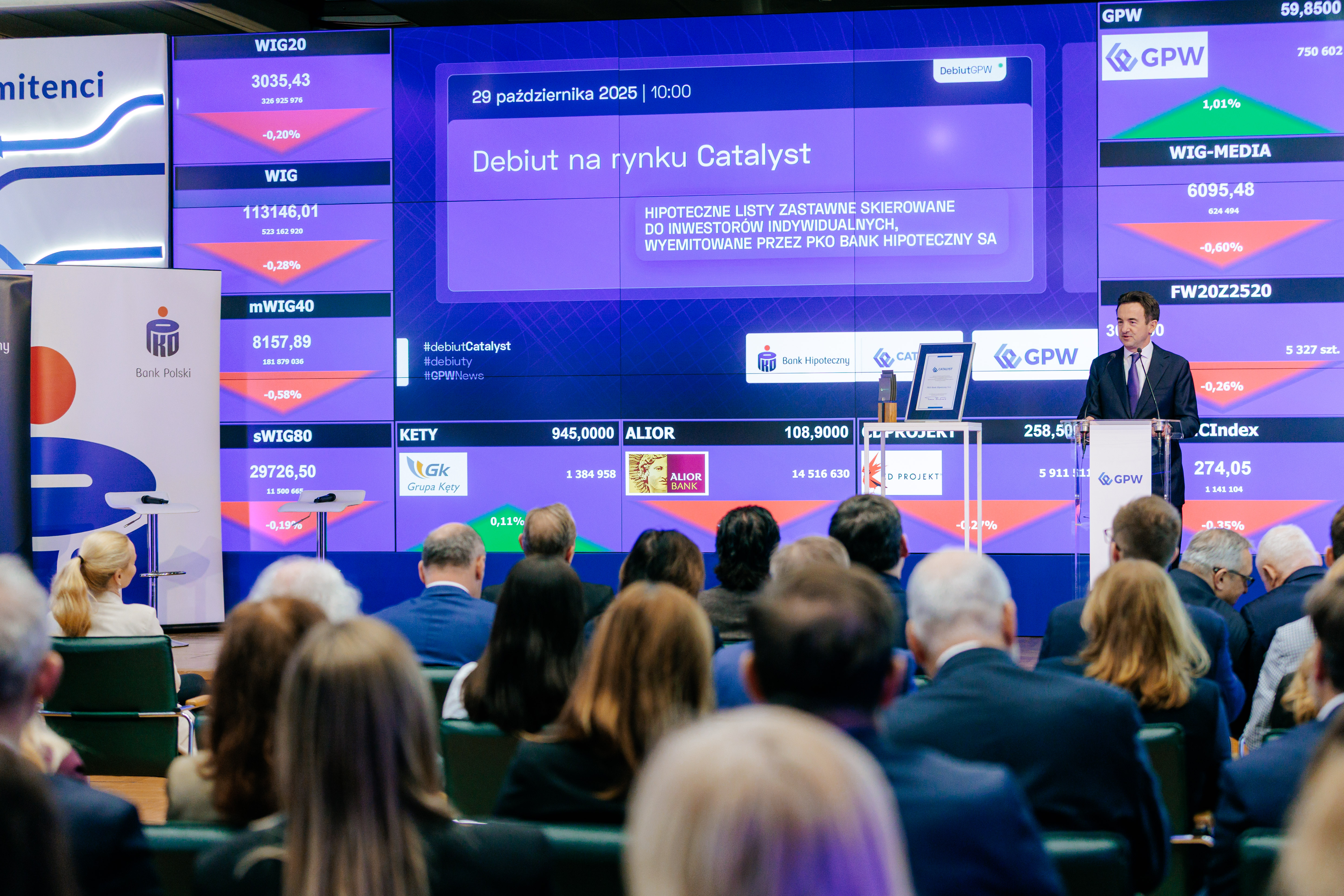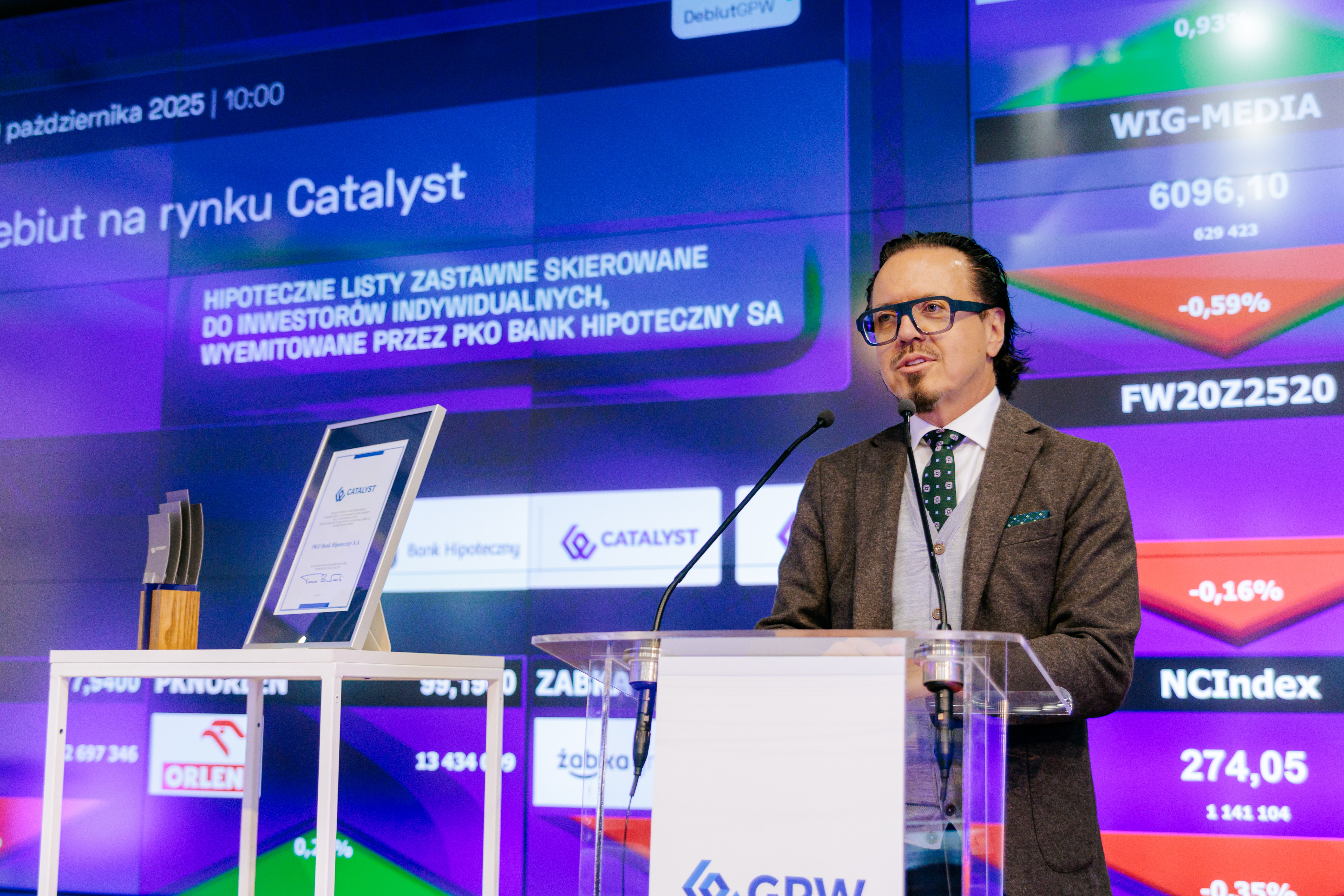– Debiut listów zastawnych PKO Banku Hipotecznego to wydarzenie o znaczeniu symbolicznym i rynkowym. Pokazuje, że polski rynek kapitałowy dojrzewa i otwiera się na nowe formy finansowania, które wspierają długoterminowe oszczędzanie i stabilność sektora finansowego. Dla Giełdy Papierów Wartościowych to kolejny krok w budowaniu zaufania inwestorów i rozwijaniu narzędzi, które łączą bezpieczeństwo z atrakcyjnym potencjałem inwestycyjnym – mówił Tomasz Bardziłowski, prezes Giełdy Papierów Wartościowych w Warszawie.