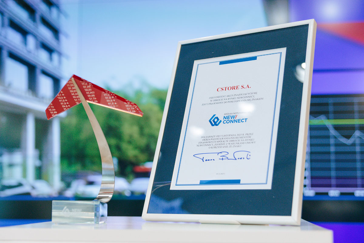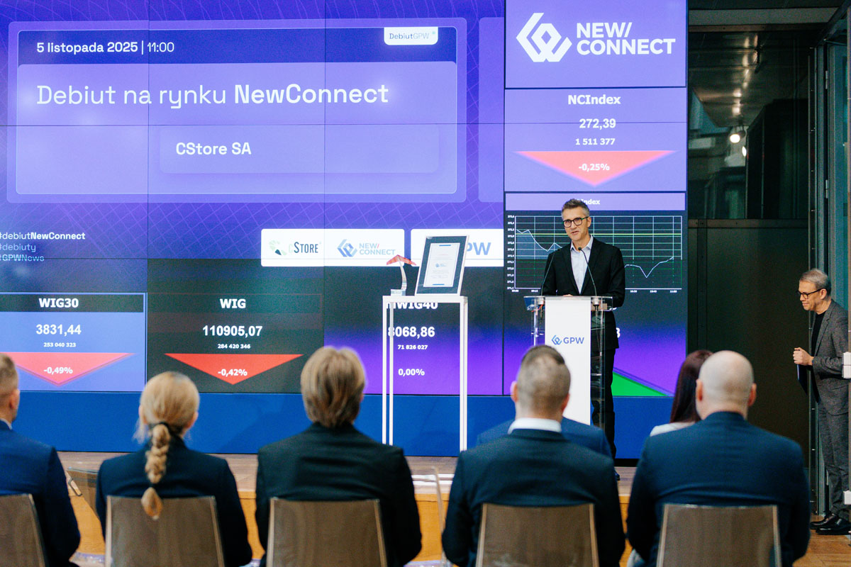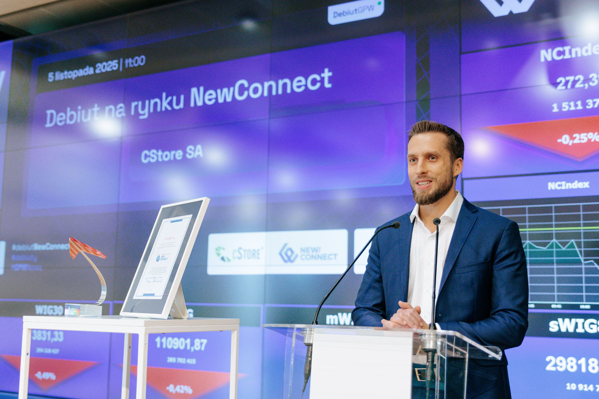 5 listopada na rynku NewConnect zadebiutowała spółka CStore. Kurs na otwarciu notowań wzrósł o ponad 60%, co czyni ten debiut jednym z najmocniejszych w tym roku. CStore jest siódmą spółką, która weszła na rynek NewConnect w 2025 roku i 356. w historii tego rynku. Autoryzowanym doradcą spółki jest Blue Oak Advisory.