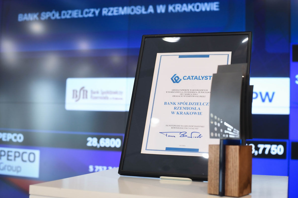 – Pozyskane środki przeznaczymy na dalszy rozwój Banku, w szczególności na wsparcie akcji kredytowej. Emisja obligacji umożliwi nam dynamiczny wzrost oraz dalsze wzmacnianie naszej pozycji rynkowej. Dzisiejszy debiut na rynku Catalyst to dla nas wyjątkowy moment, ważny zarówno dla pracowników Banku, jak i dla naszych klientów oraz partnerów biznesowych. Banki spółdzielcze rzadko korzystają z emisji obligacji na Giełdzie Papierów Wartościowych, tym niemniej dla nas jest to zaszczyt i prestiż – dodaje Krzysztof Brągiel, Członek Zarządu Banku Spółdzielczego Rzemiosła w Krakowie.