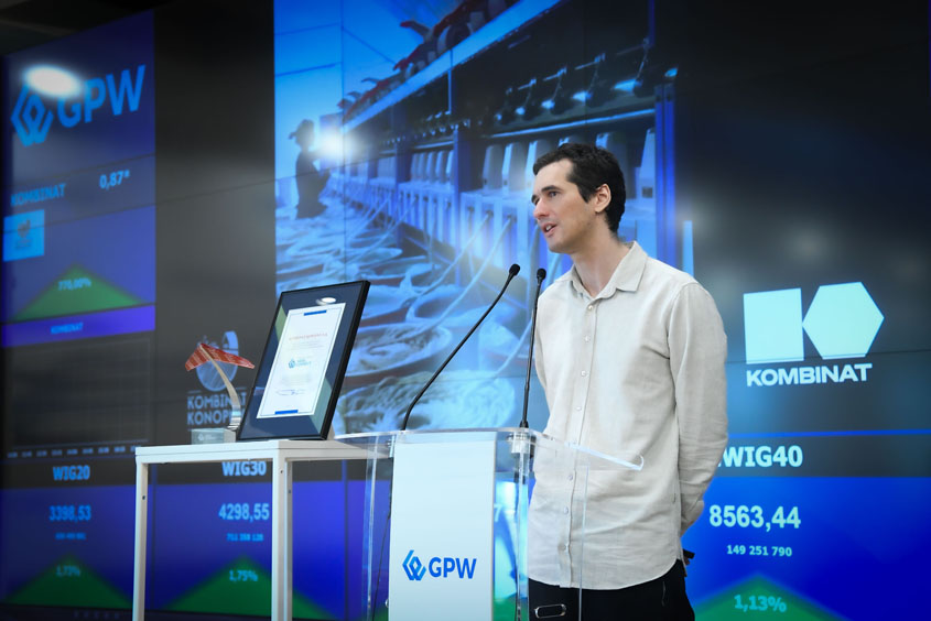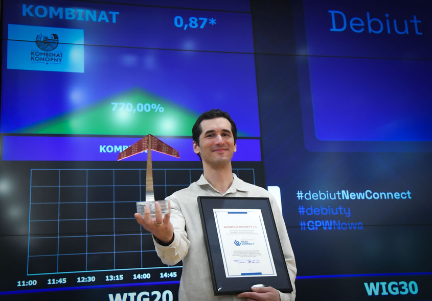 – Dzisiaj dla Kombinatu Konopnego wielki dzień – zadebiutowaliśmy na rynku NewConnect. Dzisiaj są również siódme urodziny spółki. Jesteśmy firmą, która ma blisko 2,5 tys. akcjonariuszy i jest to spełnienie obietnicy, którą daliśmy akcjonariuszom, że będziemy spółką notowaną. A na przyszłość otwiera nam to możliwości do skalowania biznesu i bycia wyróżnionym podmiotem na rynku regulowanym – podkreślał Maciej Kowalski, Prezes Zarządu Kombinat Konopny.