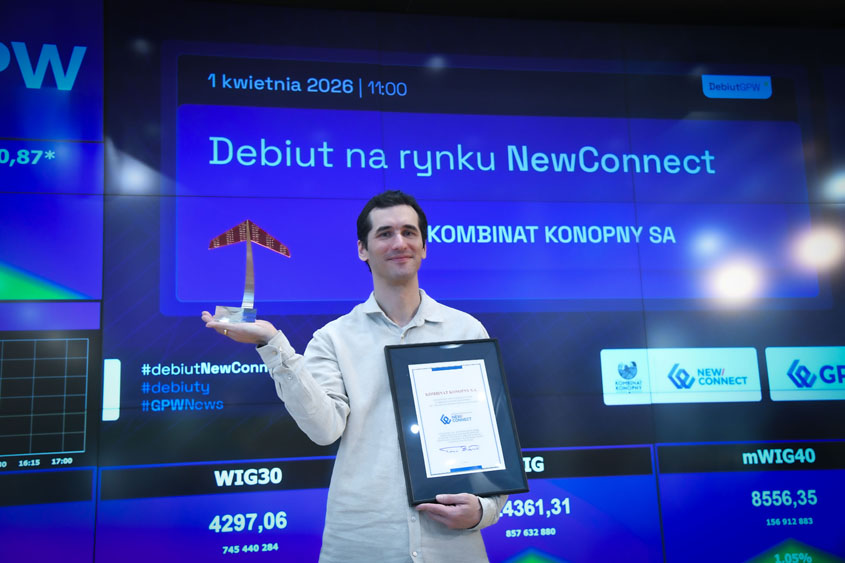 Spółka Kombinat Konopny, działająca w obszarze uprawy i przetwórstwa konopi włóknistych w dwóch głównych sektorach: zielarskim oraz tekstylnym, zadebiutowała na rynku NewConnect. To drugi debiut na NewConnect w 2026 roku oraz 356. spółka notowana obecnie na tym rynku.