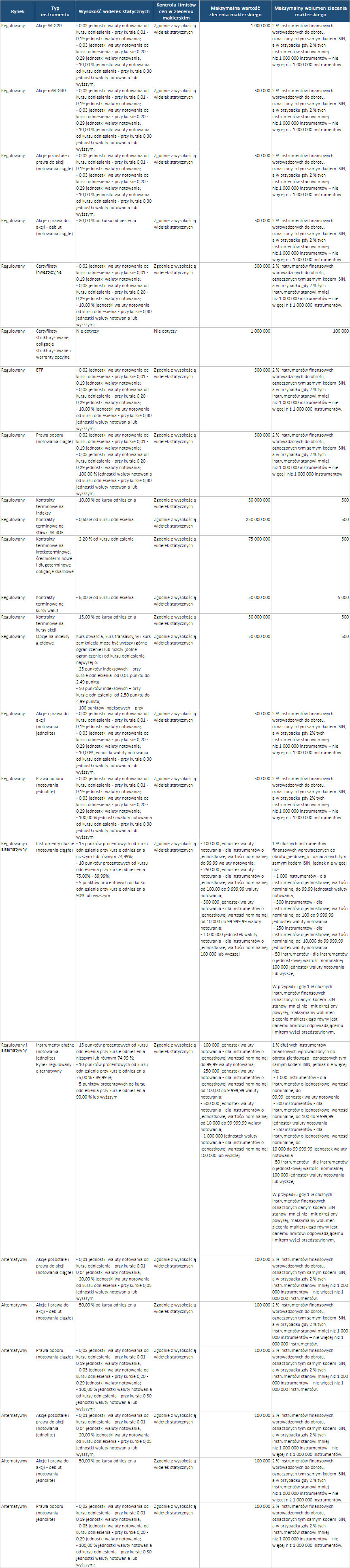 - maksymalna wartość limitów cen w zleceniu maklerskich (widełki na zlecenia);