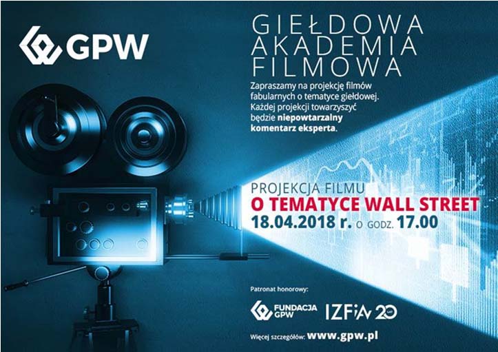 Giełda Papierów Wartościowych oraz Fundacja GPW uruchomiły unikalny projekt prezentacji filmów o rynkach finansowych. W ramach projektu będą prezentowane obrazy odsłaniające kulisy działania rynków czy też skupiające się na konkretnych problemach rynku. Merytorycznym partnerem projektu jest Instytut Ryzyka i Rynków Finansowych Szkoły Głównej Handlowej w Warszawie. Patronatu projektowi udzieliła również Izba Zarządzających Funduszami i Aktywami.