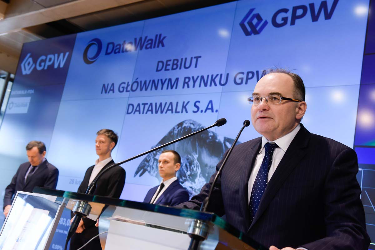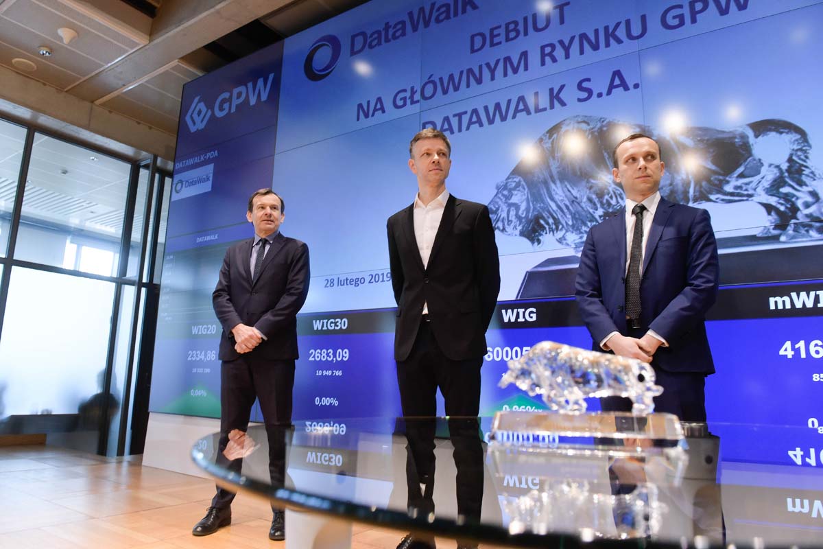 28 lutego 2019 r. na parkiecie Głównego Rynku GPW odbyło się pierwsze notowanie spółki DATAWALK S.A.