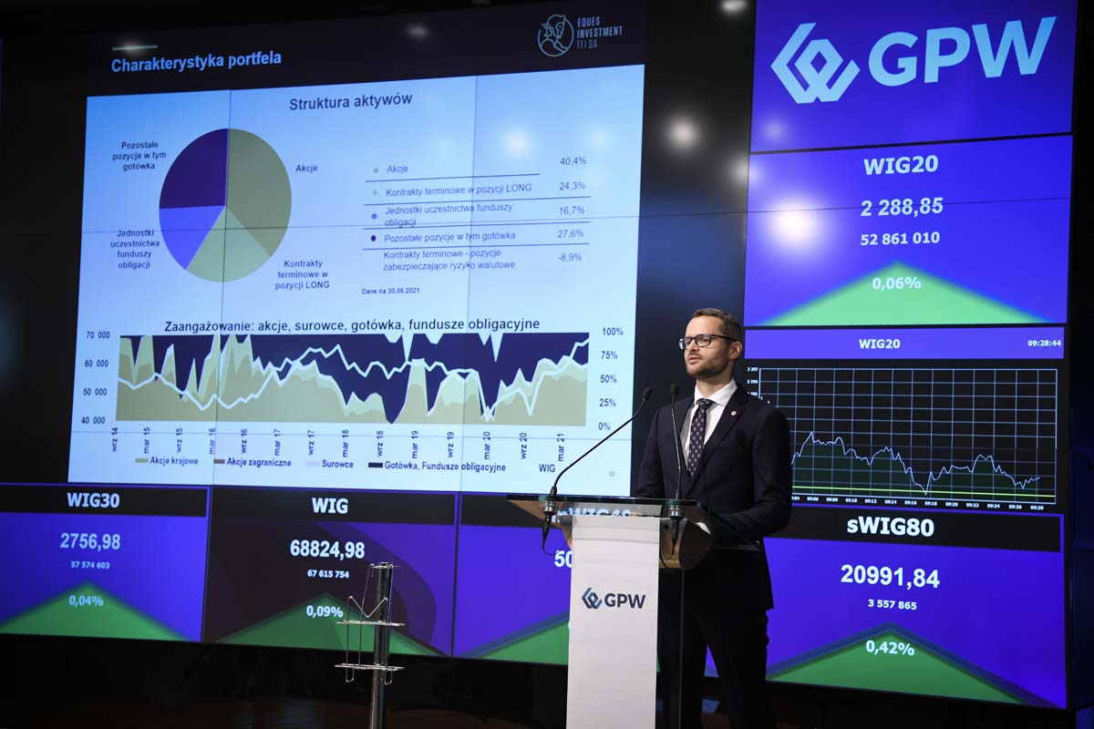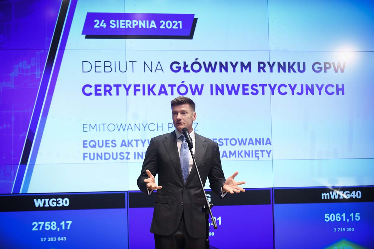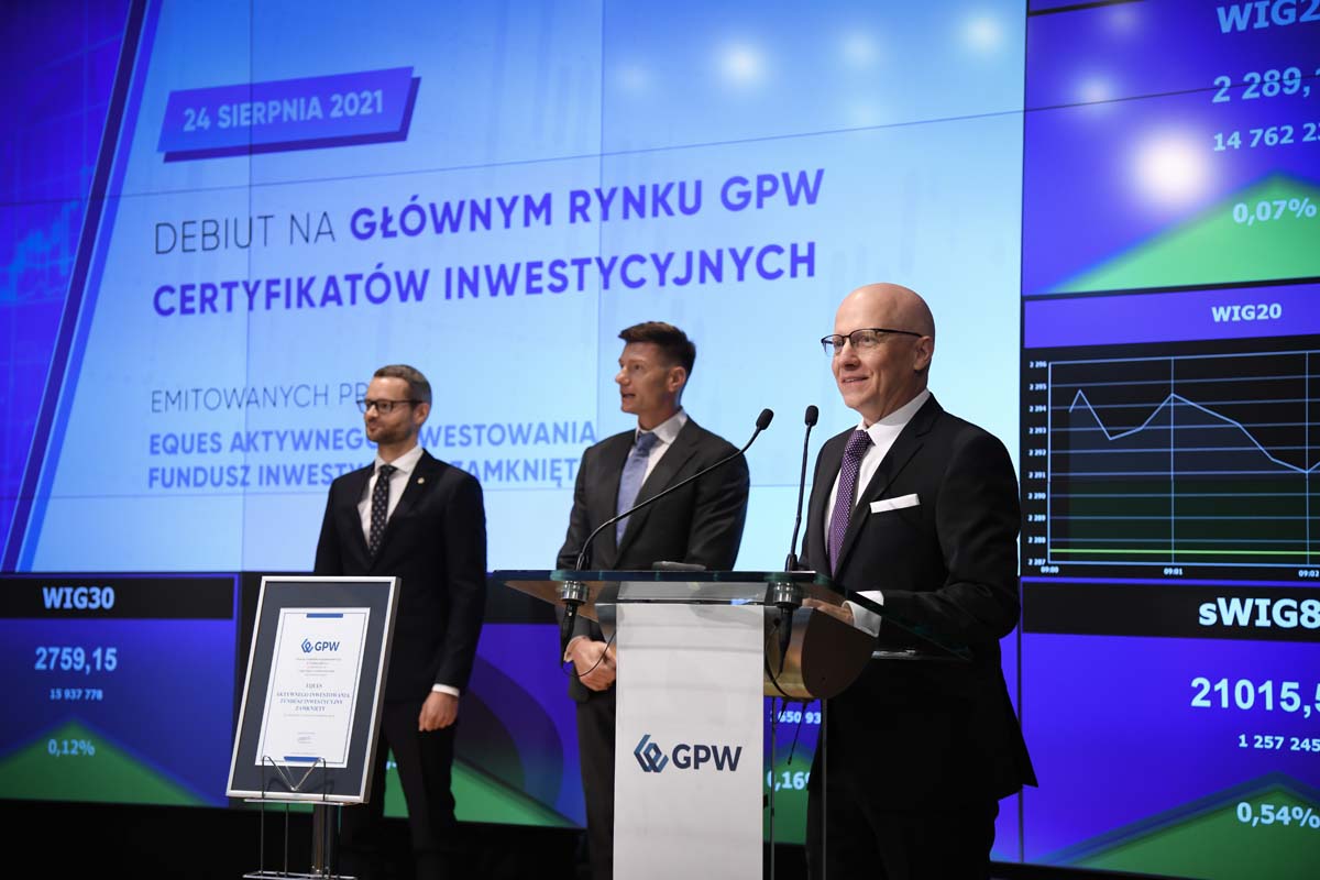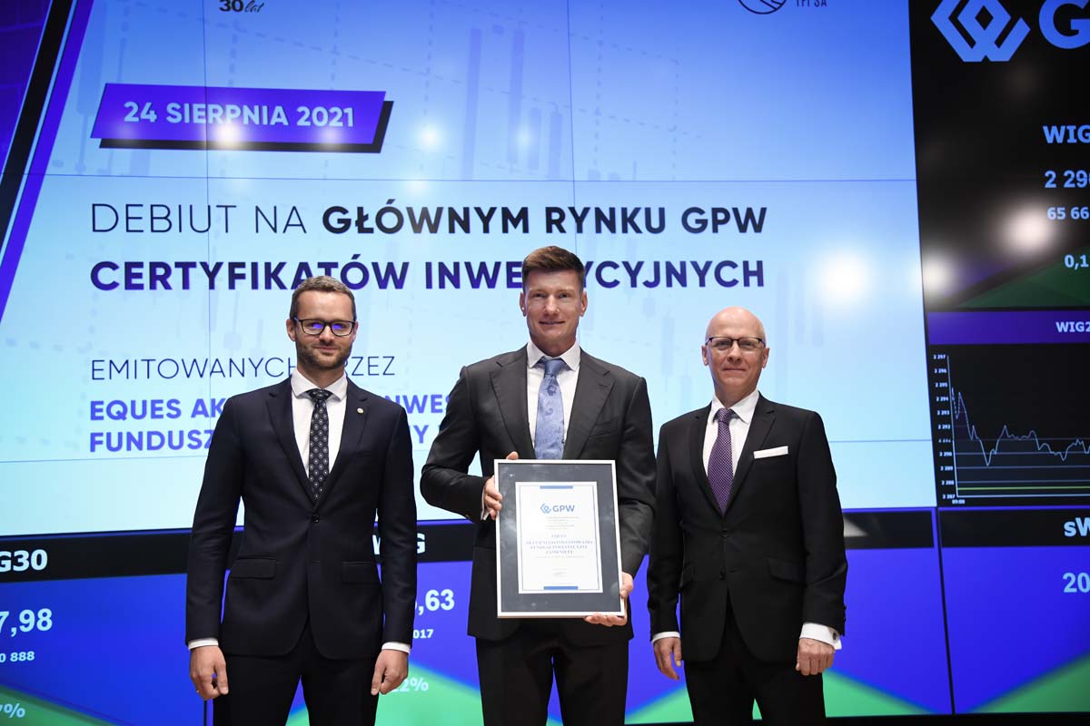 24 sierpnia 2021 r. na Głównym Rynku GPW zadebiutowały certyfikaty inwestycyjne wyemitowane przez EQUES Aktywnego Inwestowania Fundusz Inwestycyjny Zamknięty.