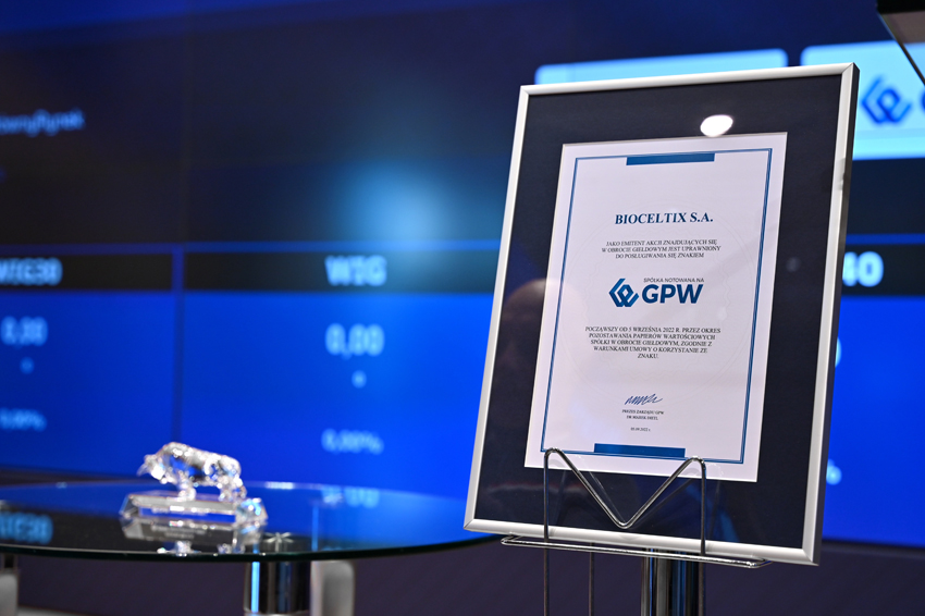 5 września 2022 r. na Głównym Rynku GPW zadebiutowała spółka BIOCELTIX S.A.