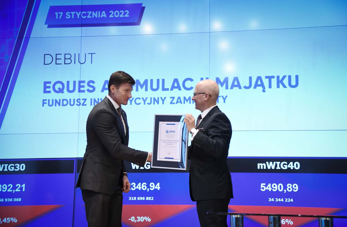 Investment certificates issued by EQUES AKUMULACJI MAJĄTKU FUNDUSZ INWESTYCYJNY ZAMKNIĘTY were newly listed on the GPW Main Market on 17 January 2022