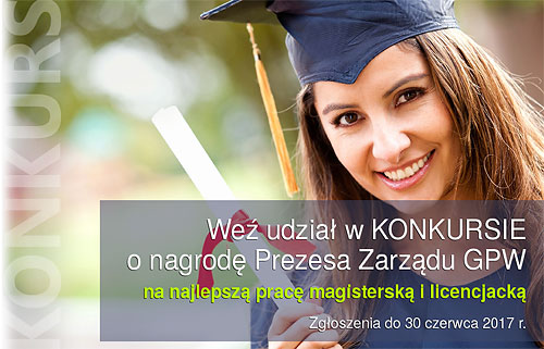 Giełda Papierów Wartościowych w Warszawie S.A. ogłasza kolejną edycję konkursu o nagrodę Prezesa Zarządu GPW na najlepszą pracę doktorską, magisterską i licencjacką na temat rynku kapitałowego. Celem przedsięwzięcia jest zachęcenie studentów i doktorantów do poszerzania wiedzy na temat rynku kapitałowego, instytucji tworzących jego infrastrukturę, a także nowoczesnych instrumentów finansowych.