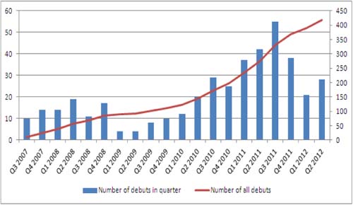 - In Q2 2012, 28 companies chose the WSE’s alternative trading platform to raise growth capital, 7 more than in Q1 2012.