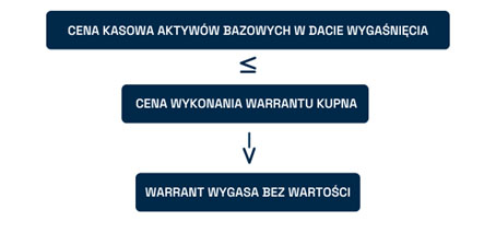 Jeśli cena zamknięcia instrumentu bazowego w dniu wygaśnięcia warrantu jest równa lub niższa od ceny wykonania warrantu, warrant wygasa bez wartości.