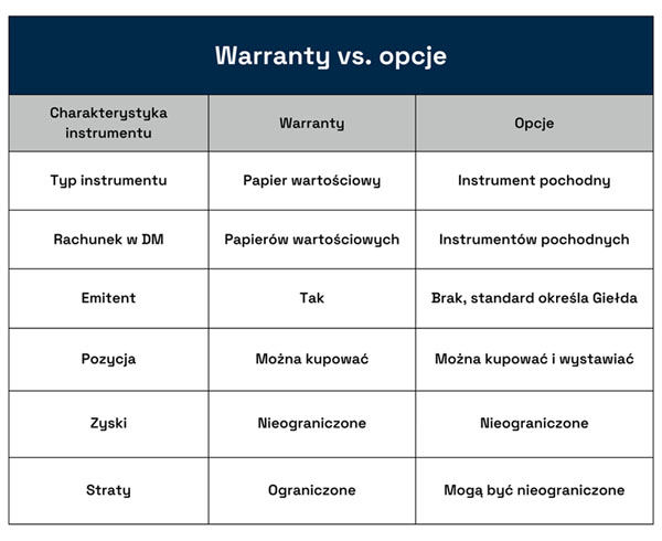 Dzięki temu, że warranty są instrumentami rynku kasowego, nabycie ich nie wymaga otwierania specjalnego rachunku maklerskiego dla rynku terminowego. Wystarczy zwykły rachunek maklerski, na którym inwestor dokonuje transakcji np. na akcjach lub ETF-ach.