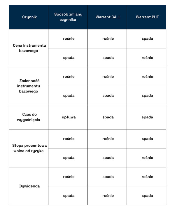 Czynniki wpływające na cenę warrantów
