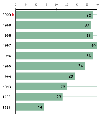 roku 2000 największy udział w obrotach akcjami zanotował CDM Pekao SA (13,2