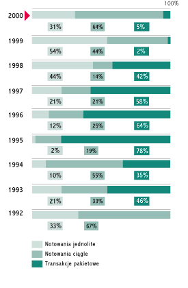 Państwa. Na koniec 2000 roku w obrocie giełdowym znajdowało się 47 serii
