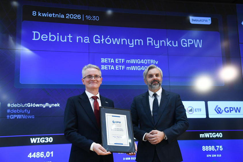 2026-04-08 15:43:26Na Giełdzie Papierów Wartościowych w Warszawie zadebiutowały dwa nowe instrumenty z oferty BETA ETF, oparte na indeksie mWIG40TR. Nowe ETF‑y umożliwiają inwestorom zajmowanie pozycji zarówno na wzrosty, jak i na spadki indeksu średnich spółek notowanych na GPW, z wykorzystaniem dźwigni finansowej lub strategii short. Debiut instrumentów wpisuje się w rozwój oferty produktów umożliwiających realizację bardziej zaawansowanych strategii inwestycyjnych na rynku regulowanym.