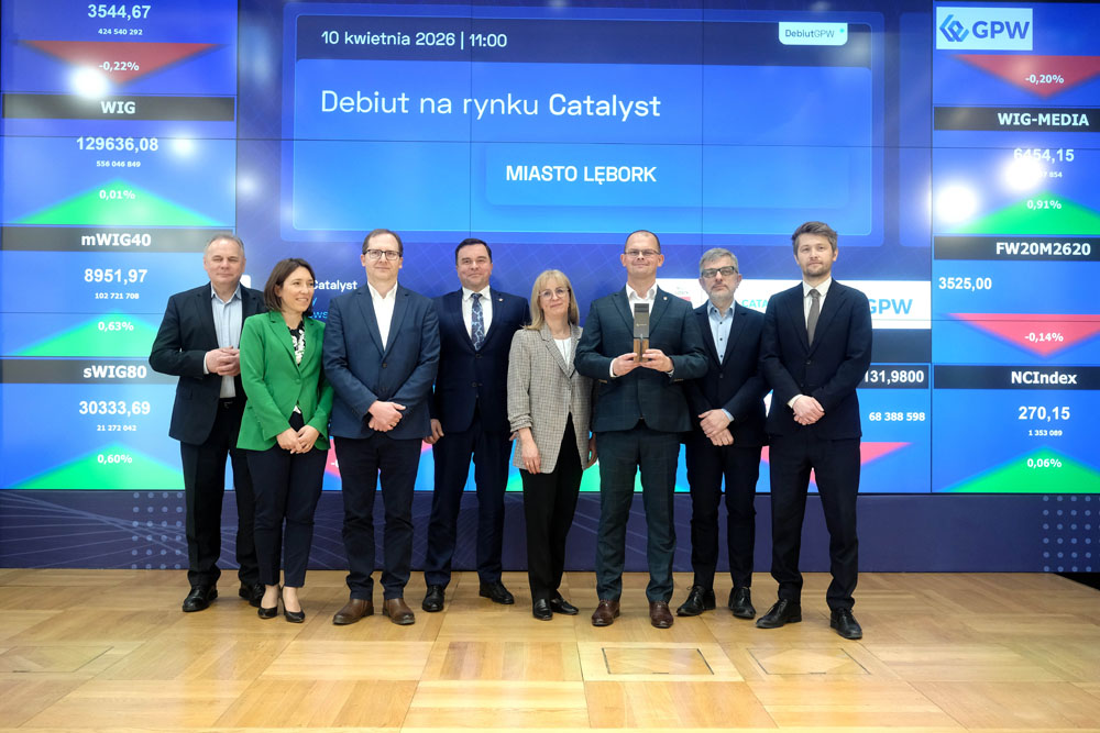 2026-04-10 15:48:34Na rynku Catalyst zadebiutowały obligacje komunalne Gminy Miasto Lębork. Emitent jest 162. podmiotem notowanym na rynku obligacji prowadzonym przez Giełdę Papierów Wartościowych w Warszawie oraz 10. debiutantem na tym rynku w 2026 roku. Debiut potwierdza rosnącą aktywność jednostek samorządu terytorialnego na rynku długu oraz zainteresowanie wykorzystywaniem instrumentów rynku kapitałowego do zarządzania finansami publicznymi.