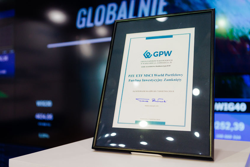 2026-04-17 17:45:07Na Rynku Głównym Giełdy Papierów Wartościowych w Warszawie zadebiutował ETFPZU ETF MSCI World Portfelowy Fundusz Inwestycyjny Zamknięty. Nowy ETF zarządzany jest przez PZU Towarzystwo Funduszy Inwestycyjnych. Jest to drugi ETF w ofercie PZU TFI oraz 32 produkt ETP notowany obecnie na warszawskim parkiecie.